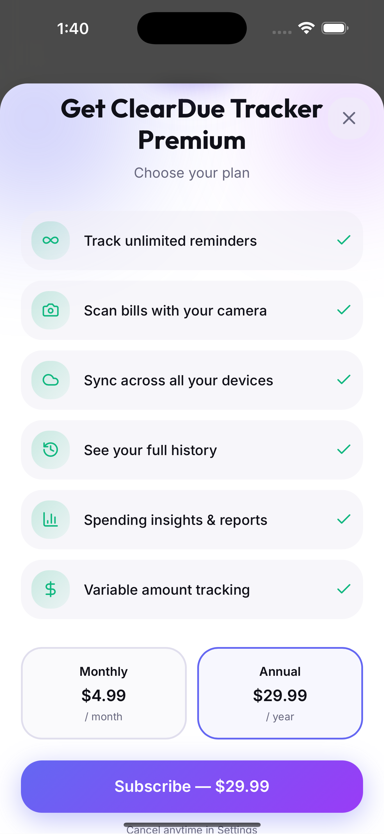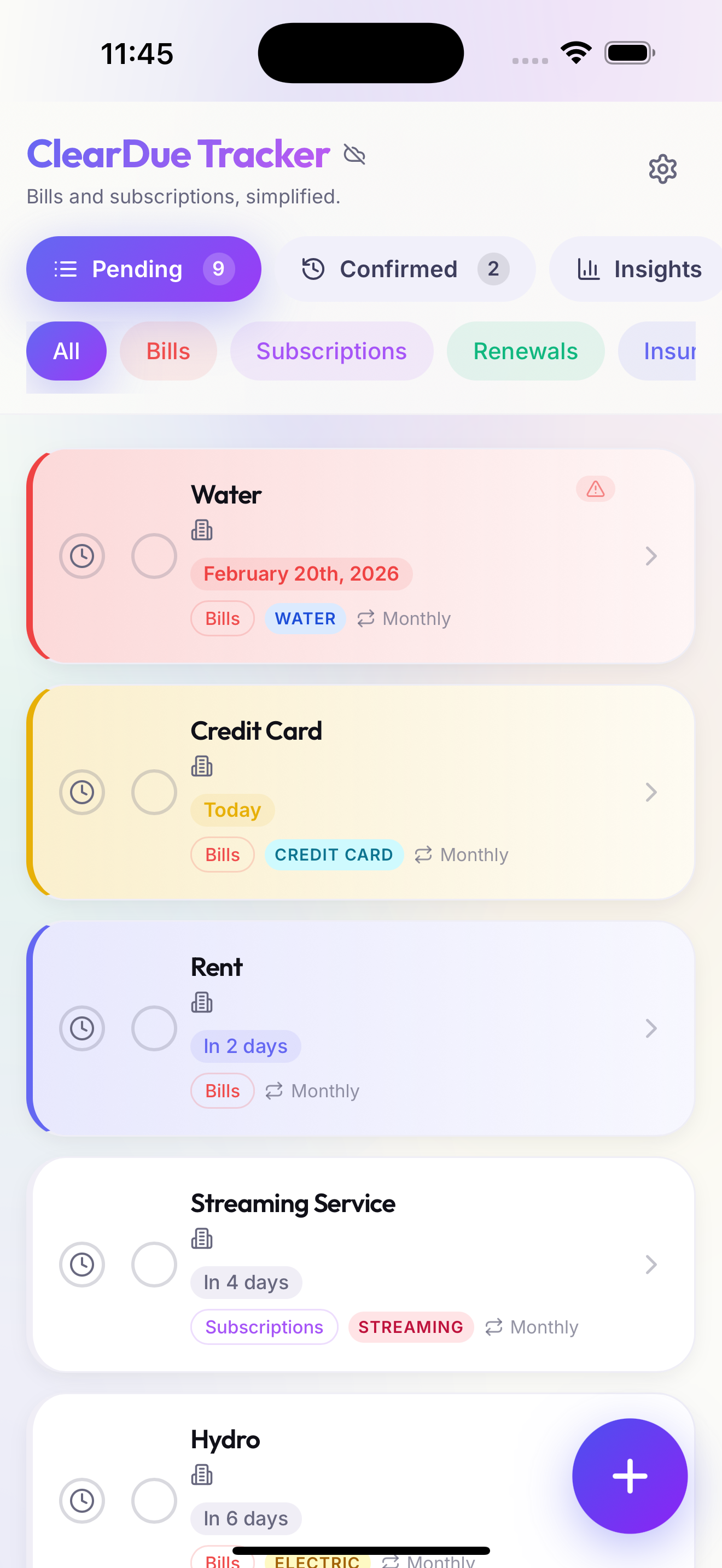 Track bills and subscriptions. Get reminders. Stay on top of what you owe without the spreadsheet life.